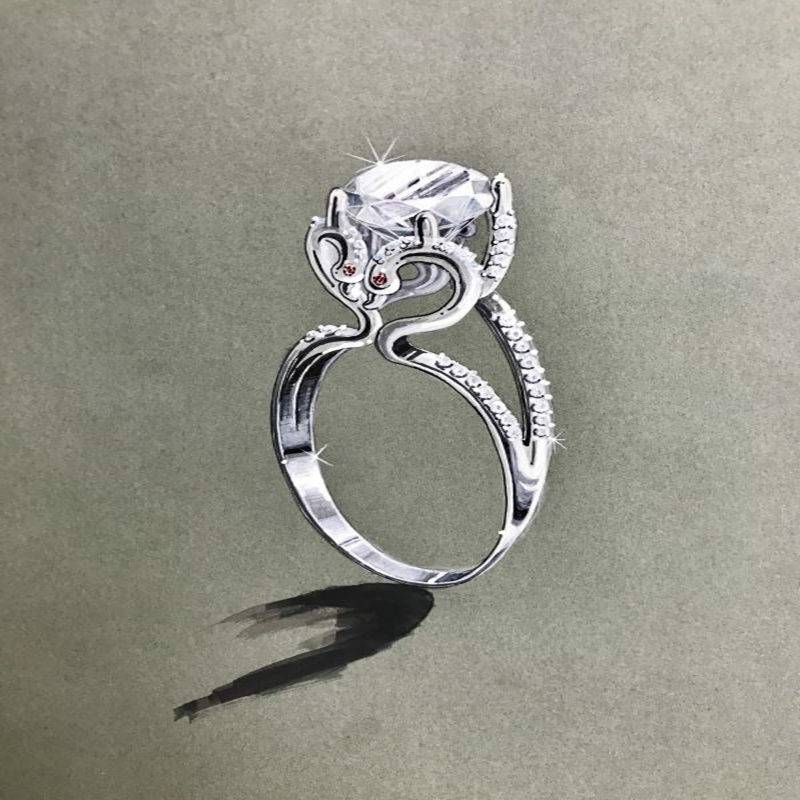 说明:主石70分(顾客要求大小),副石为钻石以及红宝石。钻戒设计灵感来源于天鹅。